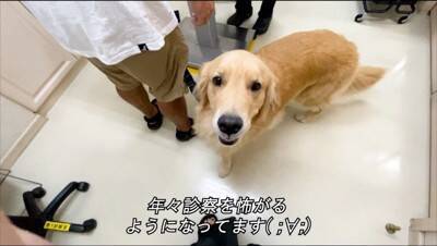 218万再生を超えて注目を集めているのは、YouTubeチャンネル『ジョイ家』のある投稿。わんちゃんの耳に外耳炎のような症状が出ていたため、パパとママはゴールデンレトリバーのジョイくんを動物病院へ連れていくことに。そこで先生に診察を受けているときのジョイくんの表情が「この世の終わり」のようだったと話題となっています。この投稿には、「『そしてこの顔である』の眼力やばい」「眼力でぶっ飛ばされるかと思ったw」など、多くのコメントが寄せられることになりました。