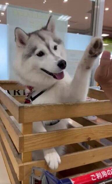 ホームセンターで愛嬌をふりまくハスキー犬 pic.twitter.com/LFJmE0cU0x