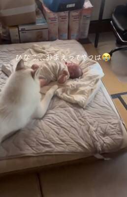 シベリアンハスキーの「緋那子(ひなこ)」ちゃんが暮らすお家では、最近生まれたばかりの赤ちゃんが家族に加わったそう。新生児のお世話はとかく大変なもの。1分1秒を争うほど時間に追われることも多いですよね。