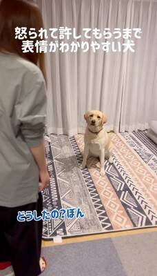 この日、ラブラドールレトリバーのぼんちゃんはお母さんに呼び出しを受けたとのこと。お母さんがぼんちゃんの目の前に立つと、ぼんちゃんはどことなくそわそわとしていたといいます。