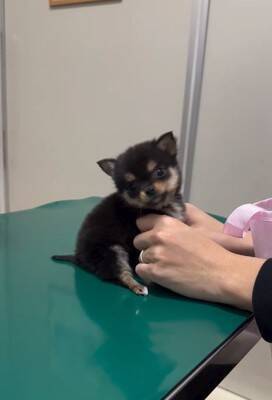 注射の後は飼い主さんの手のひらにすっぽり♡