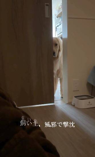 扉の前で落ち着かない様子でうろうろしていたコロッケちゃんは、隙間の前を通るたびに飼い主さんの方をチラッ。