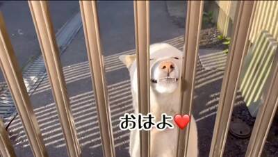 投稿者さんがお家の前までやってくると、投稿者さんに気づいたポポちゃんが柵の前にやってきたとのこと。すると、柵の間に顔を入れて、満面の笑みで投稿者さんをお出迎え。