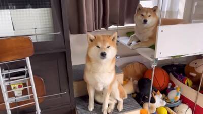 柴犬さんらしいツンデレボーイのこむぎくん。ひよりちゃんも慣れているのでしょう、一切気にしないところが微笑ましい関係性です。