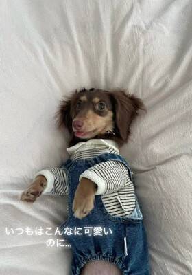 ミニチュアダックスフンドのティラちゃんは、とっても可愛い女の子。フミフミしたり上目遣いで甘えたりといった、キュートな姿が人気です。そんなティラちゃんが、わけあってエリザベスカラーを付けることになったそう。