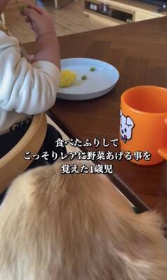 ママ曰く2人は常習犯なのだそうで、「証拠を掴んでやりました!」とのこと。野菜をレアくんにこっそりあげて、食べたことにしてしまうという作戦を立てる1歳の赤ちゃん、まさに天才…!