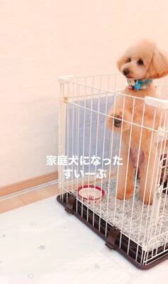 トイプードルの「すいーぶ」君が飼い主さんのお家に迎えられたのは、5歳の時でした。それまでは繁殖犬として生きてきたため、外の世界も家族に愛される喜びも知らなかったというすいーぶ君。