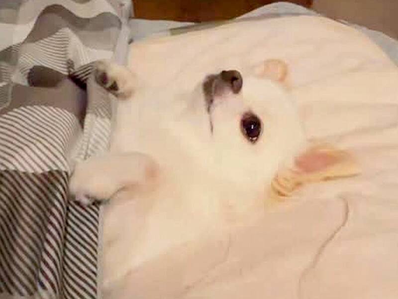まずは布団を独占される!どうやら投稿主さんのチワワ・こめちゃんは、我が物顔で飼い主さんの布団に入り、まるで「自分も人間です」と言うようにきちんと掛け布団をかけて仰向けで眠るのだとか!