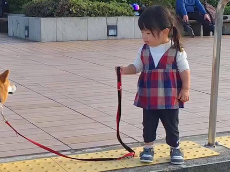 女の子と柴犬の微笑ましい光景が反響を呼んでいます。