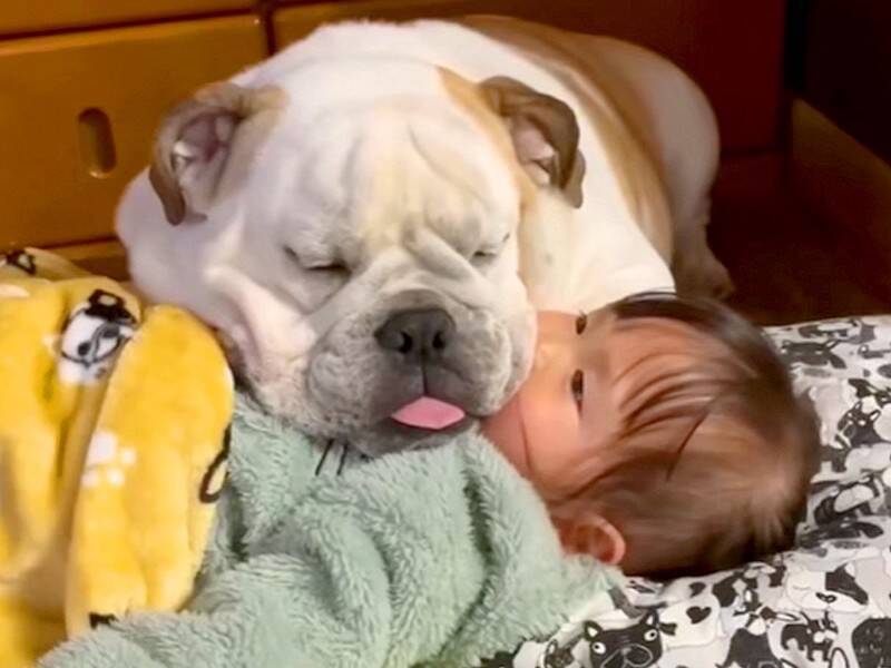 お昼寝をするわんちゃんと女の子の光景が尊すぎると話題に。その光景が投稿されたのは、イングリッシュブルドッグのぬたろう君の日常が綴られているTikTokアカウント『ぬたろう』。この日、ぬたろう君のおうちには飼い主さんの姪っ子ちゃんが遊びにきたのだそう。たくさん遊んだあとは眠たくなってしまったようで、ぬたろう君は横になっていた姪っ子ちゃんの上に乗ると、そのままお昼寝を始めてしまったのでした。