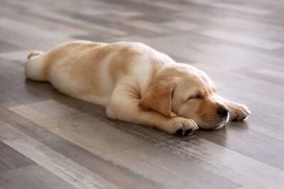 お腹を床につけ、四肢をピーンと伸ばして寝る「スーパーマン」のような寝相は、エネルギーに満ちあふれた子犬や活発な成犬に多く見られます。