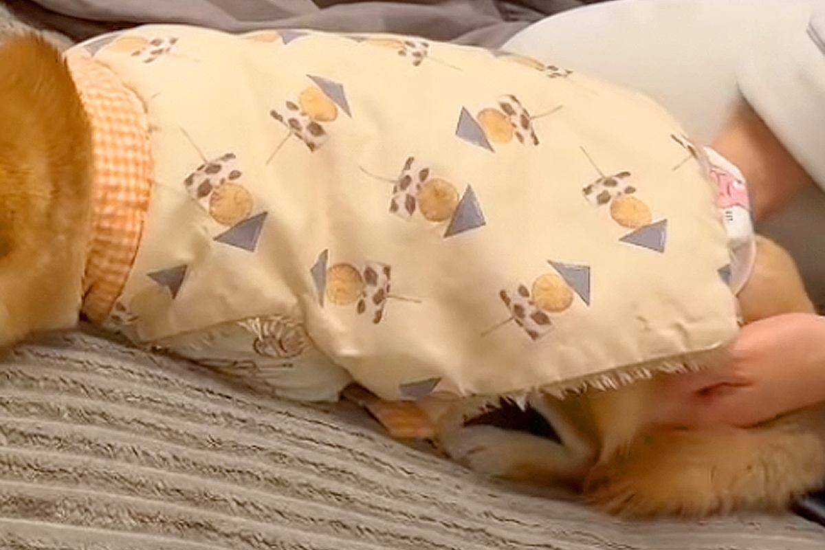 たまりかねた飼い主さんがお尻を持ち上げてみても、おでんちゃんは完全に脱力している様子…。面倒なのか、拗ねているのか、不服そうな表情で伏せの体勢を貫くおでんちゃん。あまりに可愛い抵抗に、飼い主さんの方が折れてしまったかもしれませんね。