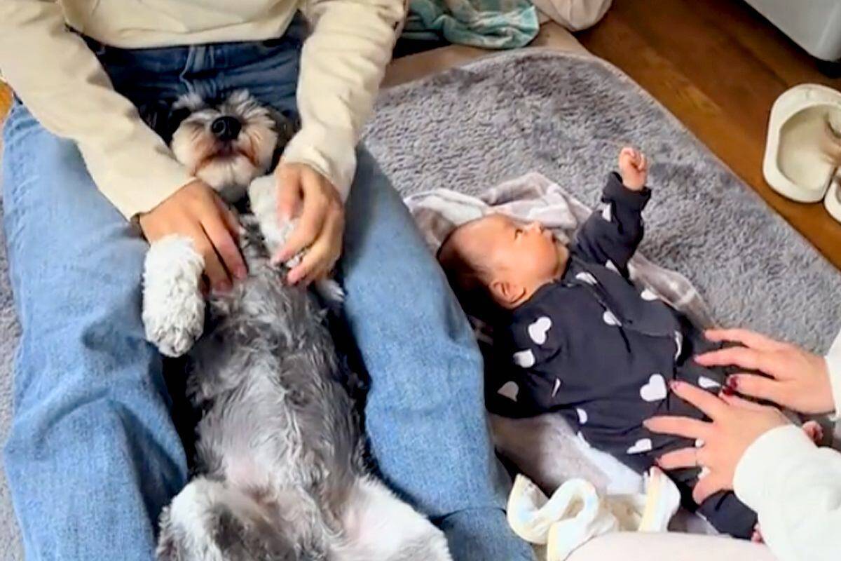 赤ちゃんとわんこの幸せなワンシーンが反響を呼んでいます。