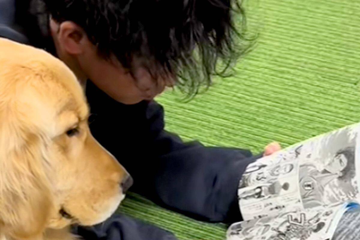 お兄ちゃんが漫画を読んでいる姿を見て、大型犬も真似したくなったようで…?本当の兄弟のような姿が反響を呼び、投稿は記事執筆時点で8万8000回再生を突破。「可愛い」「仲良し」「めちゃくちゃ癒される」といった声が寄せられています。