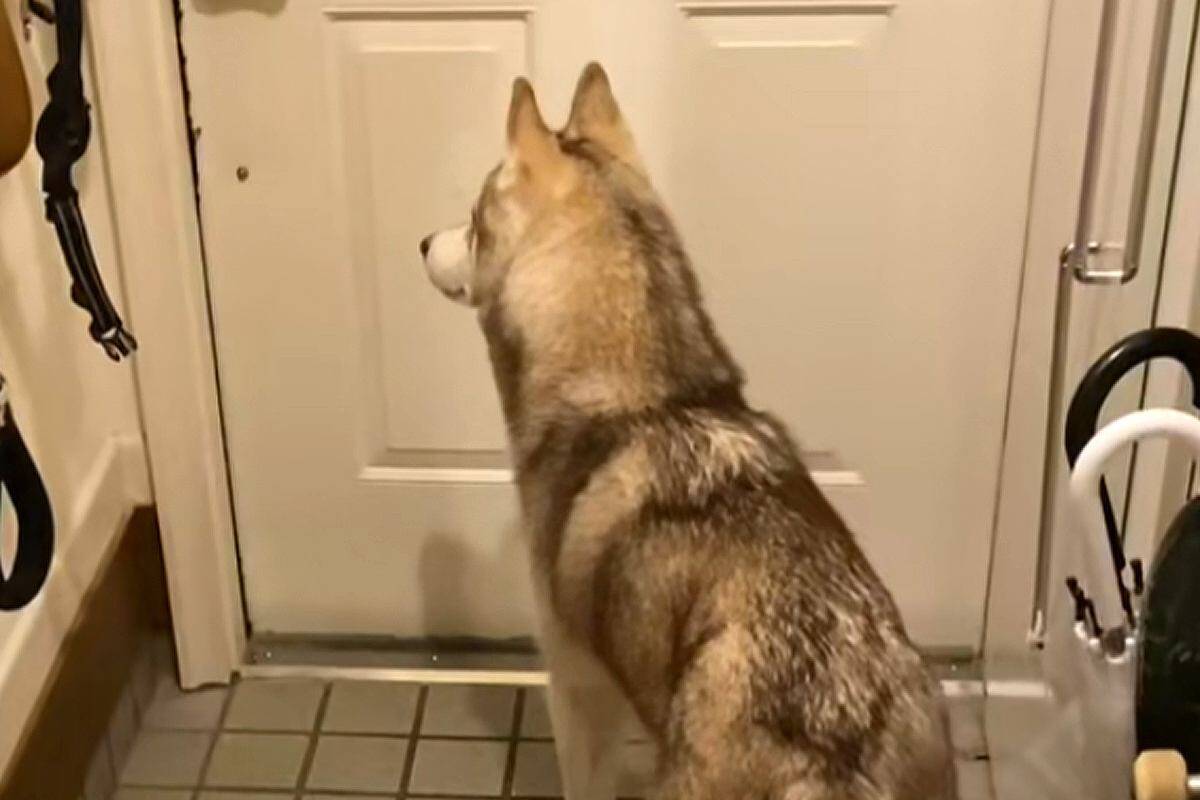 TikTokアカウント『5匹の愛犬物語』に投稿されたのは、夜勤に出かけたパパのことを玄関先で想うわんちゃんの姿。ある晩、シベリアンハスキーのロッキーちゃんは、玄関先に立ってドアを切なそうに見つめていたそう。