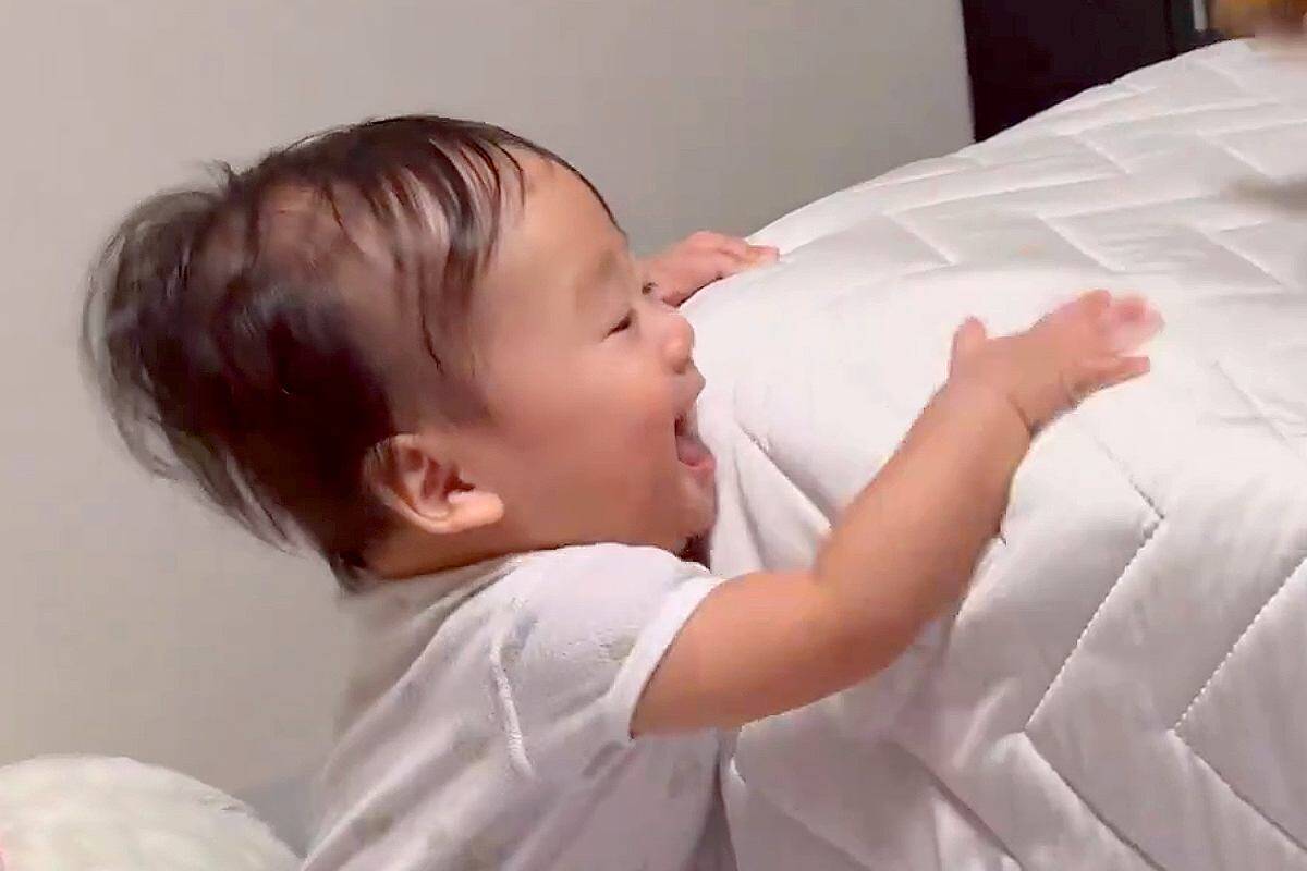 そしてベッドの上では、こうちゃんが弟くんの視界から出ないように絶妙な距離感を保ちながらプレイバウのようにぴょこぴょこと飛び跳ねていたといいます。