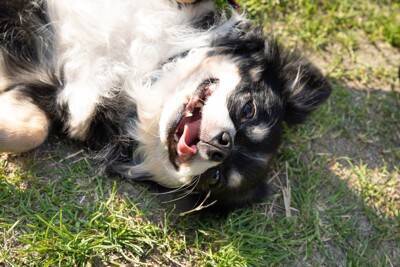 また、仰向けになって寝転がるとお腹をなでてもらえると思っている犬は、公園や人通りの多い場所でそうした行動をすることがあります。