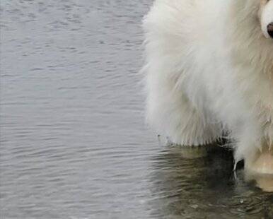 湖に出かけたサモエド「心和」ちゃん