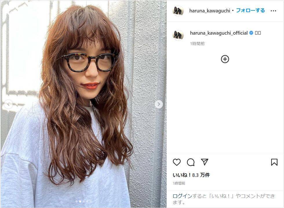 川口はハートの形をした手の絵文字を添えて写真を投稿。メガネをかけ、髪全体にウェーブがかかったヘアスタイルを披露し、ラフなTシャツもさらりと着こなしてこなれた雰囲気を醸し出している。