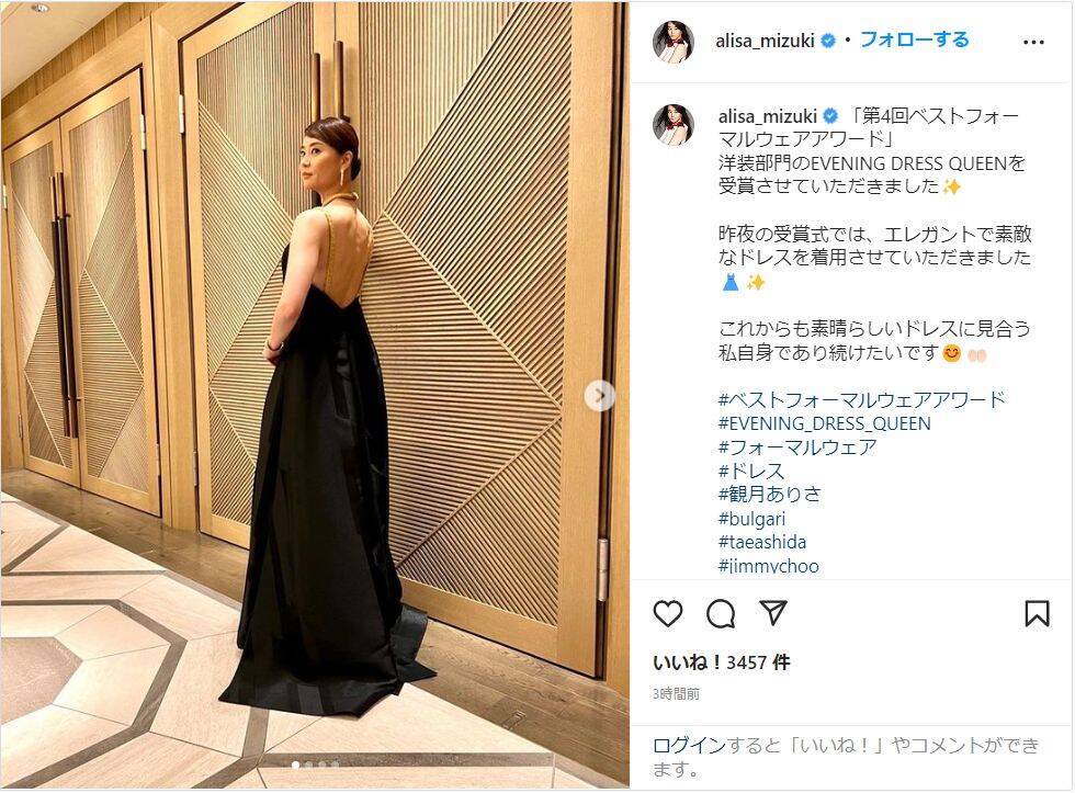 観月は「『第4回ベストフォーマルウェアアワード』洋装部門のEVENING DRESS QUEENを受賞させていただきました」と報告し、写真を投稿。背中が大きく開いた大胆な黒のドレスを身にまとい、美しい背中や肩を見せたショットを披露し、「昨夜の受賞式では、エレガントで素敵なドレスを着用させていただきました これからも素晴らしいドレスに見合う私自身であり続けたいです」とつづった。