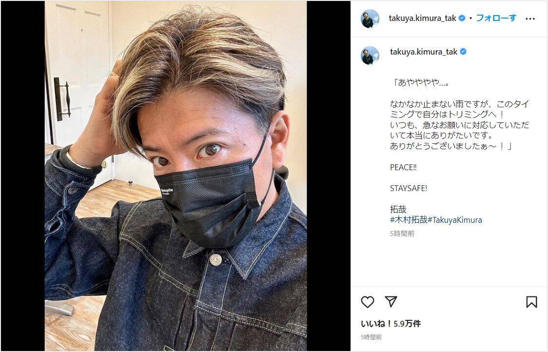 俳優の木村拓哉が16日(月)、自身のインスタグラムを更新。ヘアカット後の写真を公開した。