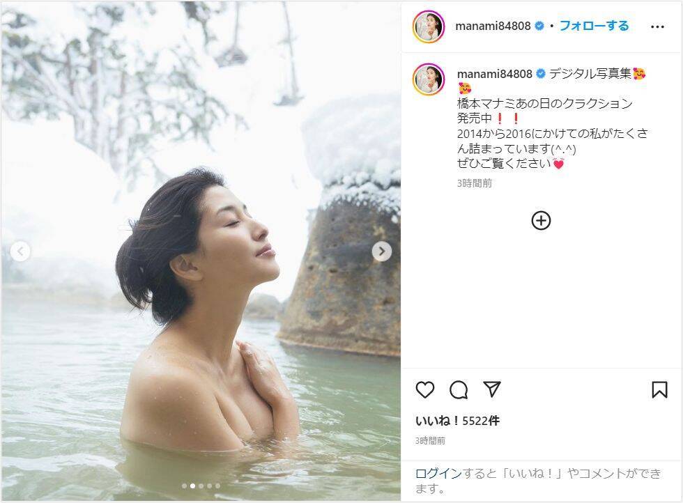タレントで女優の橋本マナミが17日(火)、自身のインスタグラムを更新。デジタル写真集の写真を公開した。