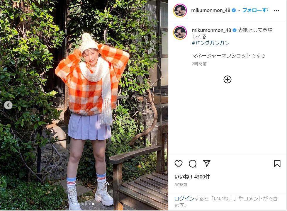 このこの投稿にファンからは、「みくりん可愛すぎるーーー」「ミニスカかわいい」「ニット帽似合うね!!」「こんな彼女感強めの、オフショット撮ってくださるマネージャーさんに、頭下がるよ!」など反響が寄せられている。