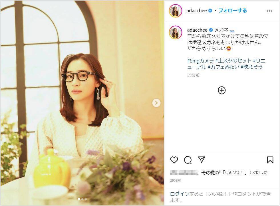 この投稿にファンからは、「メガネすんごい似合ってます」「知的すぎ!」「品がありますね」「美人はめがねしても美人ですね」など絶賛の声が寄せられている。