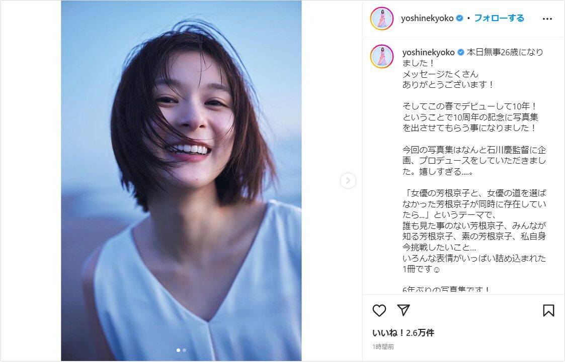 女優の芳根京子が28日(火)、自身のインスタグラムを更新。同日26歳の誕生日を迎え、デビュー10周年を記念して写真集を発売することを報告した。