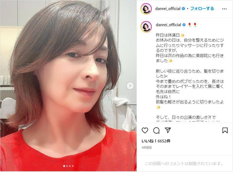 女優の檀れいが23日(木)、自身のインスタグラムを更新。ヘアカット後の写真を公開した。