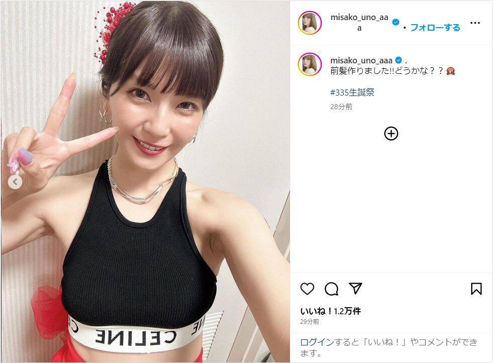 16日に37歳の誕生日を迎えた宇野は「前髪作りました!!どうかな??#335生誕祭」とつづり、写真を投稿。白の華やかな衣装や黒のブラトップ姿で、ぱっつん前髪にイメチェンした姿を披露した。