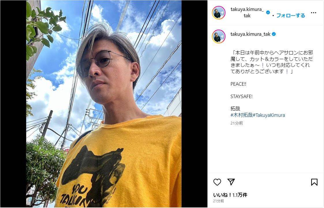 俳優の木村拓哉が23日(水)、自身のインスタグラムを更新。カットとカラー後の新ヘアを公開した。