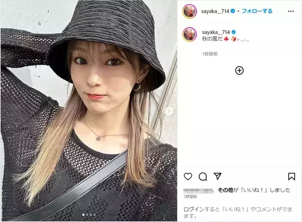 この投稿にファンからは、「すっかり秋ですね」「帽子すごい似合ってます」「超超超超可愛い」「さや姉カッコイイ」などのコメントが寄せられている。