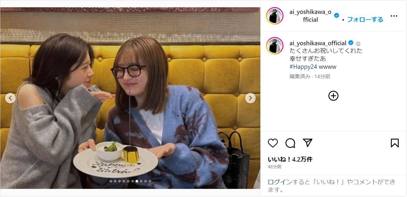 この投稿にファンからは、「愛ちゃんお誕生日おめでとう!」「ひよあい可愛すぎるるるるるる!!やはり天使と天使だ」「24歳楽しんでね!」「小さい頃の愛ちゃんめっちゃ可愛すぎ!!」「ひよりちゃんとのお祝いも可愛いよ」「素敵な1年になりますように」など祝福の声が寄せられている。