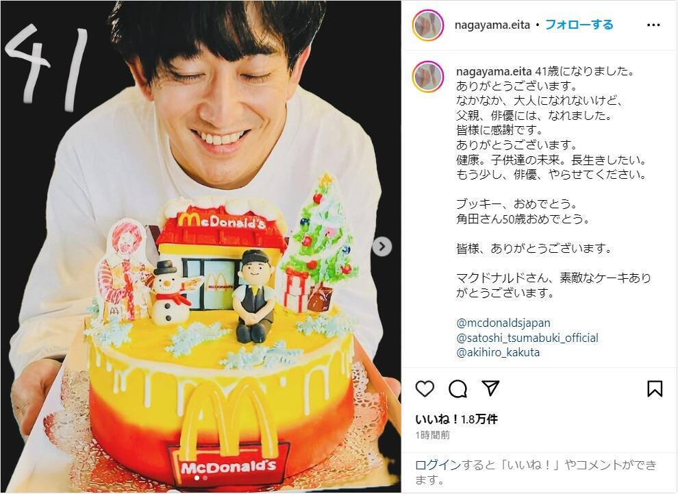 The post 永山瑛太、マクドナルドケーキに笑顔で41歳誕生日を報告!「もう少し、俳優、やらせてください。」 first appeared on YESNEWS | 超肯定的ニュースサイト.