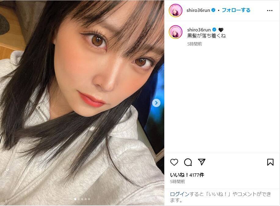 白間は「黒髪が落ち着くね」とつづり、カラーチェンジした新ヘアで自撮りしたショットを披露した。