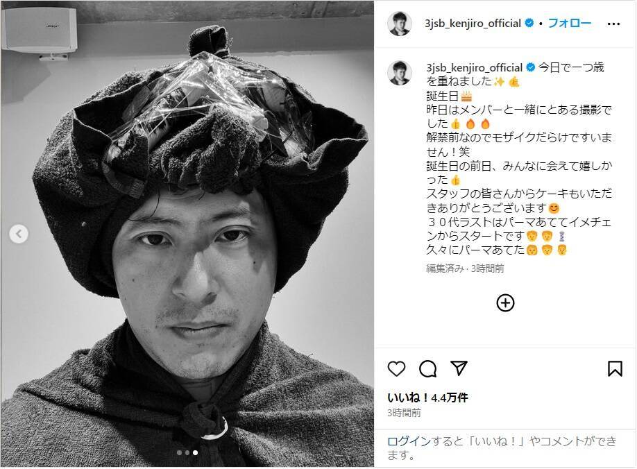 (山下健二郎のInstagramより @3jsb_kenjiro_official)