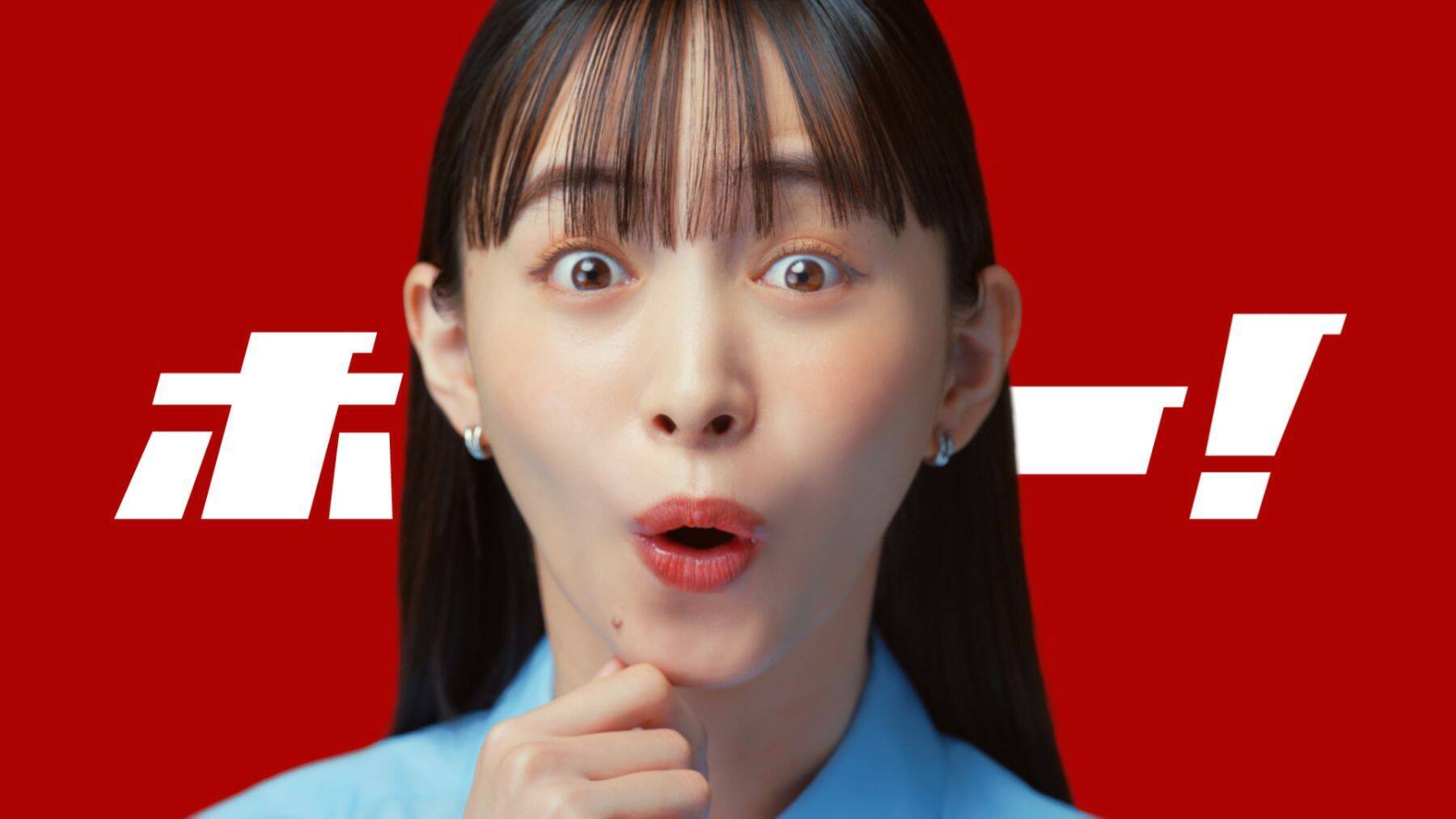 台詞は「ホー!」の一言のみだが、顔のアップと真っ赤な背景とのコントラストで、シンプルでインパクトがある。