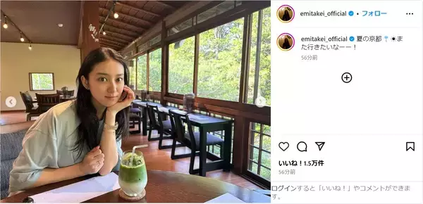 武井は「夏の京都 また行きたいなーー!」とつづり、写真を投稿。ドリンクを前にスプーンを持つ姿や頬杖をついてカメラ目線の写真、満面の笑みを見せる写真を披露した。
