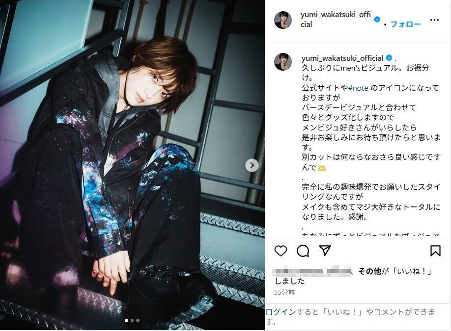 元乃木坂46で女優の若月佑美が17日、自身のインスタグラムを更新。メンズビジュアルショットを公開した。
