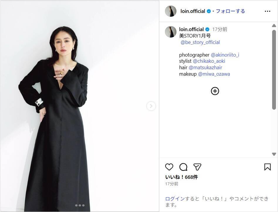 女優の井川遥が1日、自身のインスタグラムを更新。黒ワンピース姿を公開した。