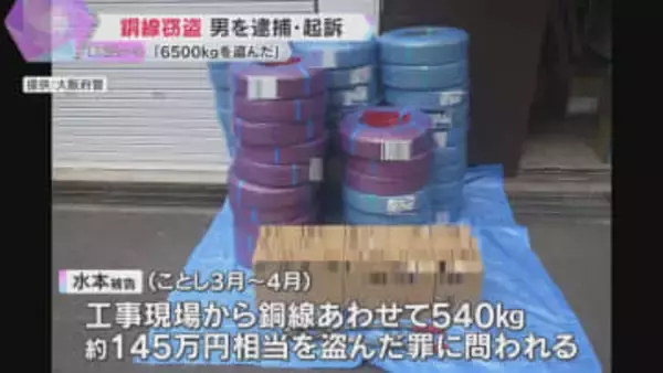 工事現場から銅線を盗んだとして、建設業の男が逮捕・起訴されました。男は「これまでに6500キログラム...