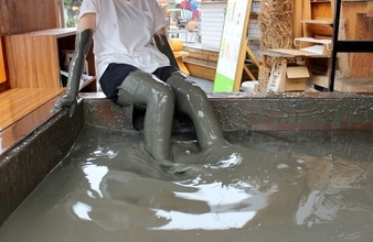 「有明湾の泥」4トンを使ったプール「GATA-BAR(ガタバー)」に入ってきた