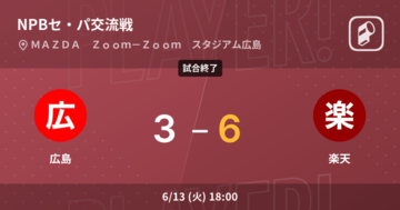 NPBセ・パ交流戦は6月13日(火)、MAZDAZoom-Zoomスタジアム広島で広島東洋カープvs東北楽天ゴールデンイーグルスの試合が行われた。広島3-6楽天とし、楽天が3点差の見事な勝利となった。