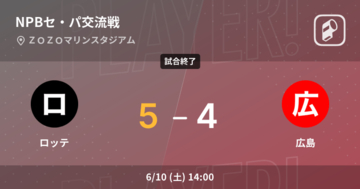 NPBセ・パ交流戦は6月10日(土)、ZOZOマリンスタジアムで千葉ロッテマリーンズvs広島東洋カープの試合が行われた。ロッテ5-4広島とし、ロッテが1点差での勝利となった。