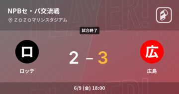 NPBセ・パ交流戦は6月9日(金)、ZOZOマリンスタジアムで千葉ロッテマリーンズvs広島東洋カープの試合が行われた。ロッテ2-3広島とし、広島が1点差での勝利となった。