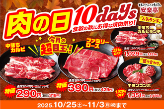 「和牛カルビ」740円→370円と破格! 肉の日限定ご奉仕焼肉に注目