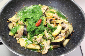 【え、この緑色は…ニラのペースト!?】ルウもカレー粉もスパイスも使わない「中華風グリーンカレー」作ろう