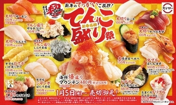 回転寿司チェーン店のスシローは、「GoTo超スシローPROJECT」の第3弾として、豪華ネタをふんだんに盛り付けた寿司や大切りネタを集めた新春名物の「てんこ盛り祭」を、スシロー史上最大規模で1月6日か...