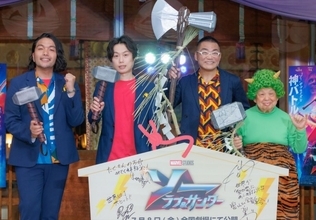 声優の三宅健太、お笑いコンビ・見取り図の盛山晋太郎とリリー、コメディアンの高木ブーが22日、都内にて開催された映画『ソー:ラブ&サンダー』大ヒット祈願イベントに出席。高木と対面した三宅が、「子どもの時...